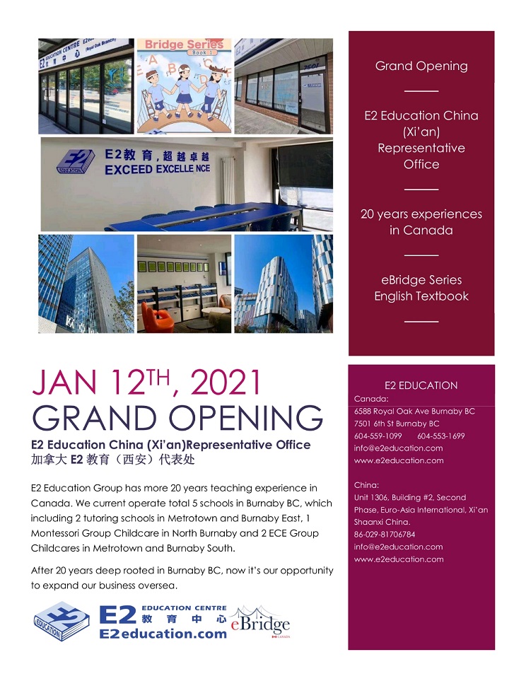 E2 Education (Xi'an) representative office was grandly opened on Jan.12, 2021 in historical city-the acient capital of Xi'an Chanba Ecological Zone.