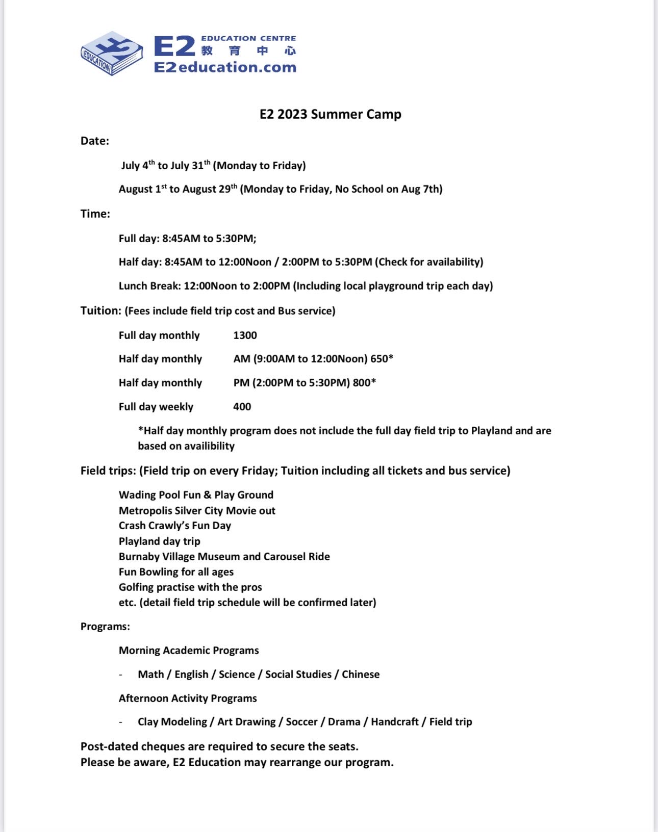 2023 E2 Summer Camp is now accepting registration. Limited seats, please register as soon as possible.